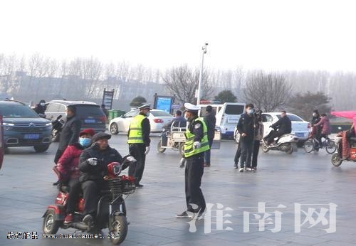 圖為壽縣交警在車流中執(zhí)勤。