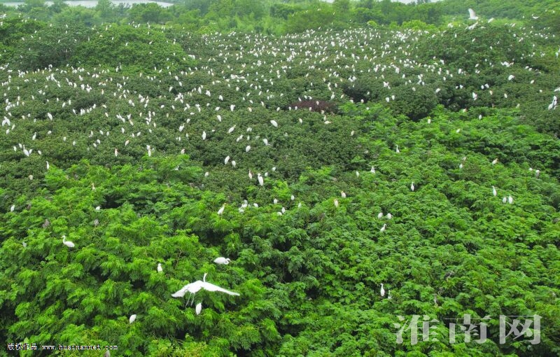 滿山坡的石楠樹,密密麻麻的白鷺群,鳥從綠出,水天一色!(記者 張 靜 張 越 廖凌云 攝)