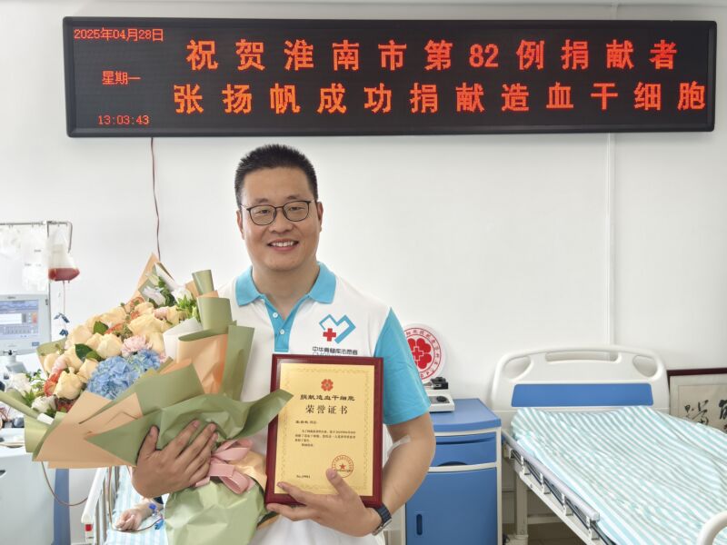 此后,張揚(yáng)帆采訪了淮南大多數(shù)造血干細(xì)胞捐獻(xiàn)者的相關(guān)活動,每一次都加深了他對捐獻(xiàn)的向往。2023年,安徽省“捐獻(xiàn)生命的種子走進(jìn)淮南”活動中,捐獻(xiàn)者與受捐者家庭見面的感人場景,讓他更加堅定了信念。