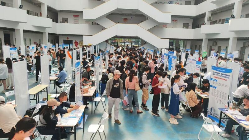近期,安徽理工大學(xué)、田家庵區(qū)政府聯(lián)合舉辦2025年“千企進(jìn)校園、萬崗進(jìn)萬家”招才引智高校行專場(chǎng)招聘會(huì)。本次招聘會(huì)重點(diǎn)圍繞工業(yè)互聯(lián)網(wǎng)等新興產(chǎn)業(yè),吸引了60余家單位參與,提供崗位400余個(gè),300余名應(yīng)屆畢業(yè)生到場(chǎng)應(yīng)聘。圖為招聘會(huì)現(xiàn)場(chǎng)。