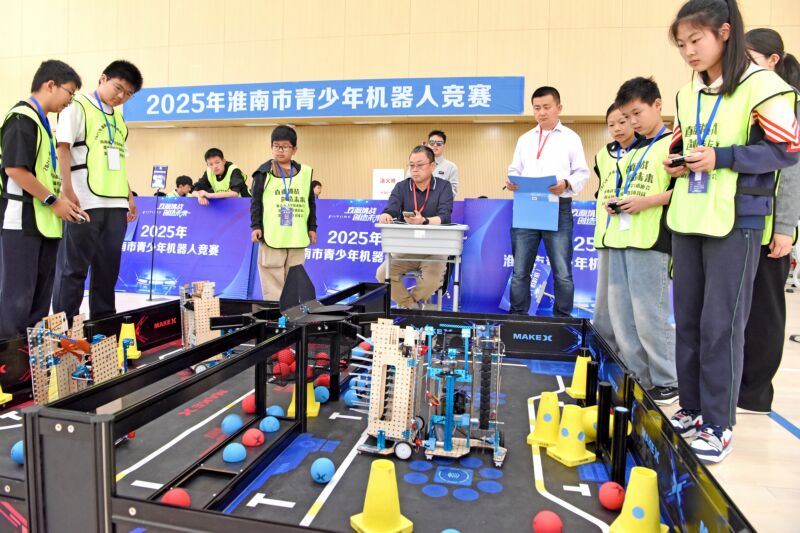 日前,由市科學(xué)技術(shù)協(xié)會(huì)、市教育體育局、淮南高新區(qū)共同主辦的2025年淮南市青少年機(jī)器人競(jìng)賽在北京師范大學(xué)淮南實(shí)驗(yàn)學(xué)校舉行,來自全市各中小學(xué)校的142支隊(duì)伍、270名選手參加了9個(gè)項(xiàng)目的競(jìng)賽;顒(dòng)旨在推動(dòng)中小學(xué)機(jī)器人教育發(fā)展,培養(yǎng)青少年創(chuàng)新精神和實(shí)踐能力。圖為參賽選手在進(jìn)行激烈比拼!