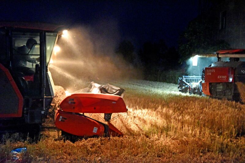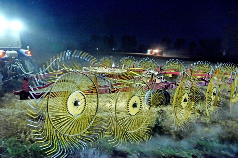 “趕得及趕得及!估計還有三四天就能全部收完了!”麥田旁,短暫的晚飯時間后,徐懷彪與徐棒棒心照不宣地點點頭,各自麻利地鉆進(jìn)兩臺收割機(jī)駕駛室,轟鳴的機(jī)器聲很快再次響起。夜幕降臨,一直陪伴他們的,是收割機(jī)上方耀眼的燈光,一輛輛摟草機(jī)和打捆機(jī)緊隨其后,忙碌不停。