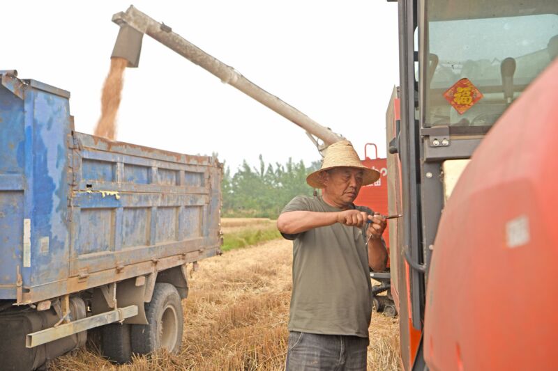 “先吃飯!吃完了再接著干!”徐懷彪和徐棒棒站在田埂上,一邊迅速扒著飯,一邊望著已經(jīng)收割了一大半的麥田,緊鑼密鼓的夏收工作以來,這成了他們一天中難得的放松時間。