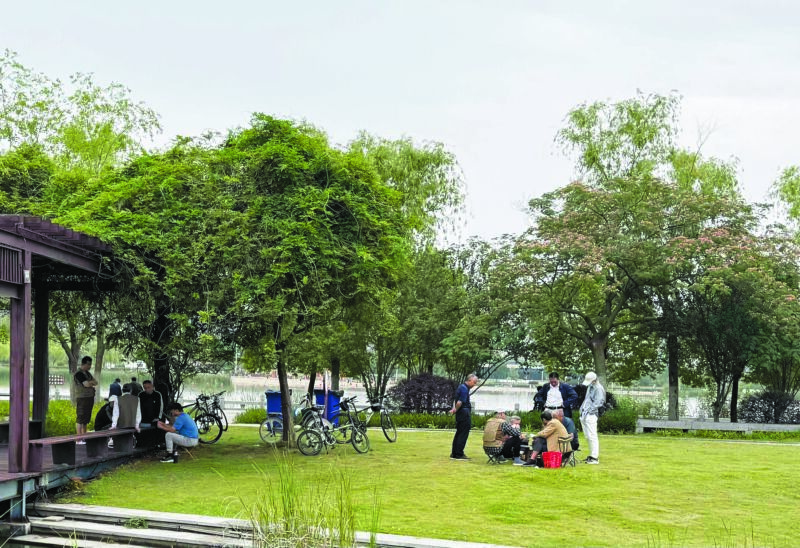 端午假期,公園、游園成了眾多市民休閑首選地,在這里,大部分市民都能做到文明游園,但還會出現(xiàn)用過的紙巾被隨意丟在長椅上、單車停放在草坪上等不和諧畫面,與美景格格不入。(記者 攝)
