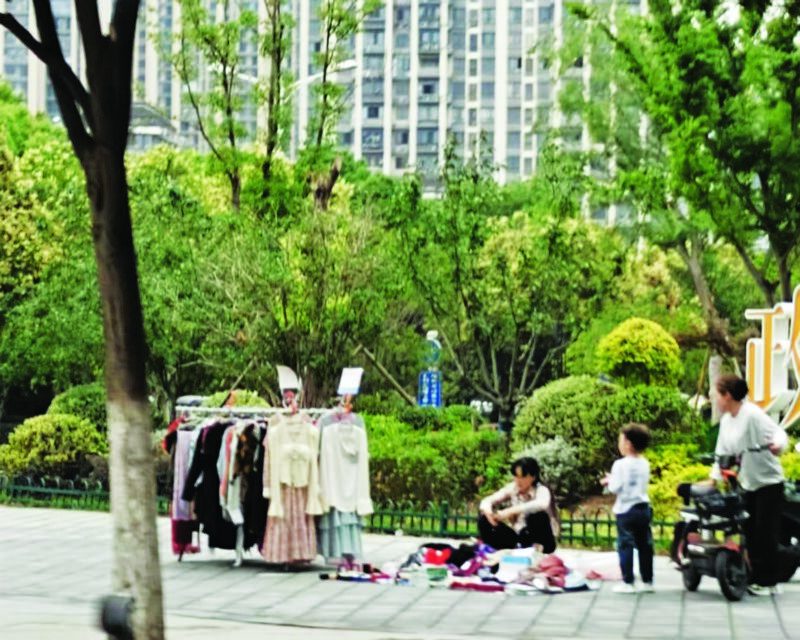 端午假期,記者在田家庵銀鷺萬樹城小區(qū)附近的一處街頭游園內(nèi)看到,有商販在人行通道上擺攤設(shè)點,不僅影響市民出行,也有損游園整體美觀。(記者 攝)