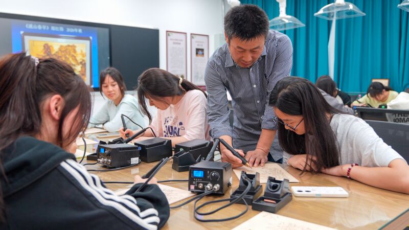 近日,市級(jí)非遺“淮南烙畫(huà)”代表性傳承人鄭紅偉,在教授學(xué)生烙畫(huà)技法,推動(dòng)“淮南烙畫(huà)”非遺技藝的傳承與發(fā)展。近年來(lái),田家庵區(qū)高度重視非物質(zhì)文化遺產(chǎn)保護(hù)傳承工作,加大對(duì)非遺項(xiàng)目的扶持力度,積極培育非遺傳承人,以文旅融合等形式持續(xù)推動(dòng)非遺創(chuàng)新發(fā)展,做好非遺“活化”工作,讓非遺技藝在新時(shí)代煥發(fā)出更加璀璨的光彩。目前,該區(qū)有省市區(qū)非遺項(xiàng)目19個(gè),涉及淮南烙畫(huà)、剪紙、紫金石線刻等傳統(tǒng)文化。