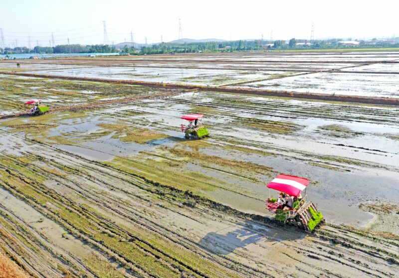 夏種時(shí)節(jié),安徽農(nóng)墾淮南農(nóng)場通過建設(shè)智慧農(nóng)業(yè)示范田、水稻旱直播種植、多品種水稻示范種植等多種形式,抓好糧食生產(chǎn),提高土地綜合效益。圖為農(nóng)機(jī)手在智慧農(nóng)業(yè)示范田中進(jìn)行機(jī)插秧。