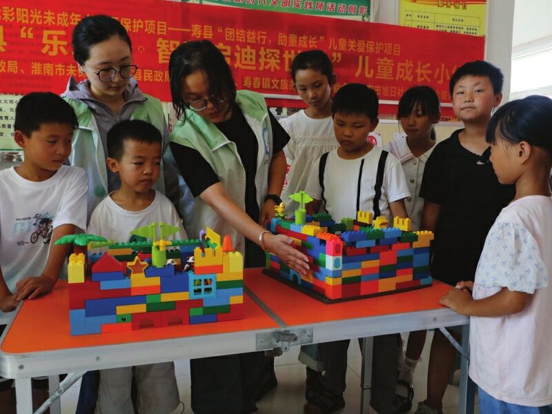 第三站位于壽縣壽春鎮(zhèn)九龍民族村,當(dāng)日這里正開展“樂(lè)樂(lè)箱・智慧啟迪探世界兒童成長(zhǎng)”活動(dòng)。觀察力、協(xié)作力,體現(xiàn)“智趣賦能”的服務(wù)理念,展示項(xiàng)目對(duì)兒童綜合素質(zhì)培養(yǎng)的成效。旭日社工介紹,在這里“團(tuán)結(jié)益行助童成長(zhǎng)”兒童關(guān)愛(ài)保護(hù)項(xiàng)目有序推進(jìn),社工們圍繞兒童安全守護(hù)、課業(yè)幫扶、心理支持及紅色文化浸潤(rùn)等維度開展多元服務(wù),如家、校、社共護(hù)“零欺凌”服務(wù)活動(dòng),開展防溺水、防拐騙等宣傳,提升兒童安全意識(shí)與技能;并通過(guò)“安全+學(xué)業(yè)+心理+文化”多維賦能,筑牢留守、困境兒童成長(zhǎng)支持網(wǎng),持續(xù)護(hù)航兒童發(fā)展。