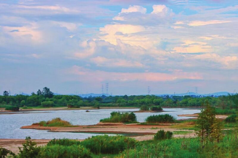 千里淮河,如詩如畫;茨蟿e具風韻的“千島湖”位于淮河南岸,西至平圩大橋,東鄰正在建設中的淮河大橋。這塊沿河濕地中,星羅棋布著或方、或圓、或長條狀大大小小的島嶼。浪漫的環(huán)境,優(yōu)美的景色,猶如一幅秀麗巨畫鑲嵌在淮河岸邊。