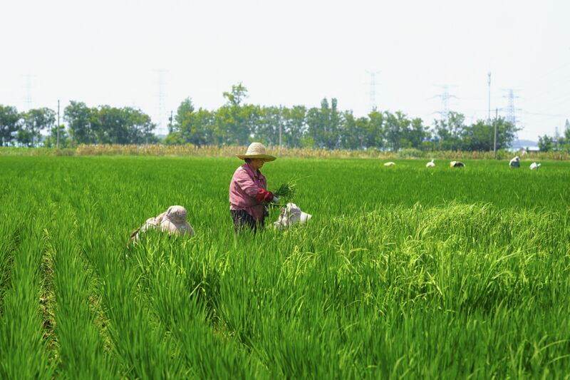當(dāng)前正值水稻生長旺季,安徽農(nóng)墾淮南農(nóng)場持續(xù)聘請人工除草隊對良種水稻進(jìn)行除草作業(yè),消除稗草等有害雜草,有效避免了藥劑使用,保障水稻品質(zhì),促進(jìn)生態(tài)環(huán)保。