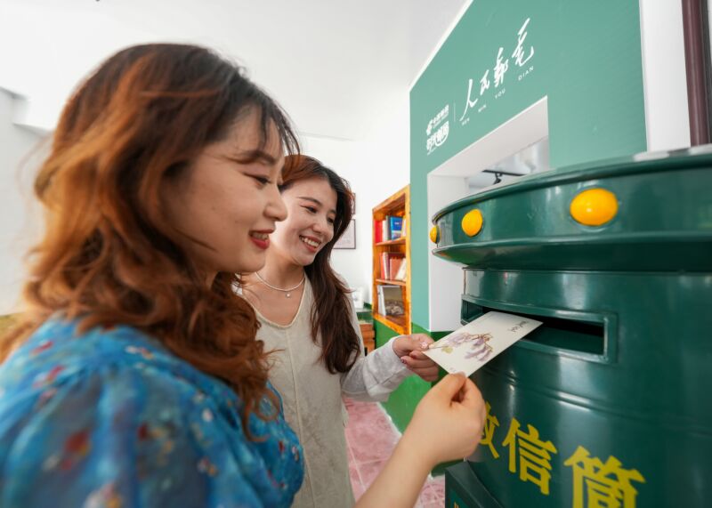 為提升區(qū)域文化旅游的知名度和吸引力,田家庵區(qū)深入挖掘本土歷史文化資源,秉持保護與開發(fā)并舉的理念,著力打造淮河老街1952項目,通過修復歷史建筑、融入懷舊元素與現代業(yè)態(tài),再現老淮南工業(yè)記憶與市井風情。漫步老街,游客既能感受老淮南工業(yè)記憶的厚重,又能體驗市井風情的鮮活。圖為游客在時光郵局投出自己寫下的明信片。