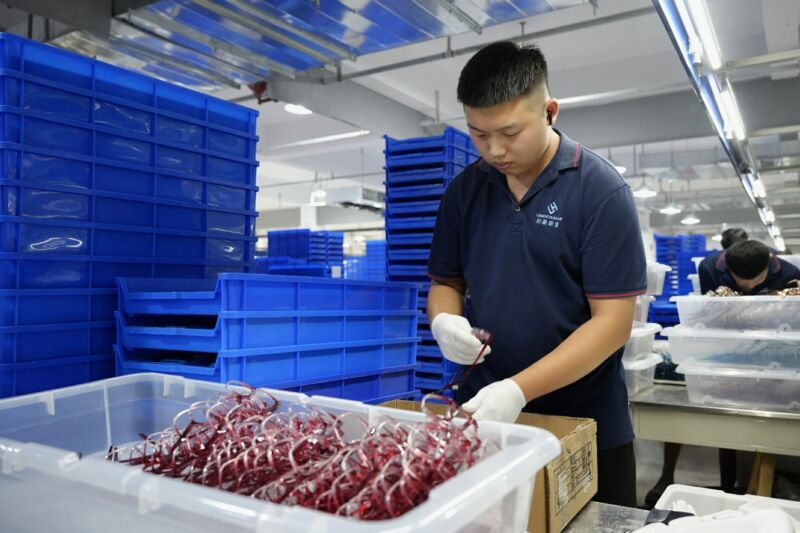 淮南市利豪眼鏡有限公司車間工人忙著對新下線的眼鏡進行檢驗裝箱,該企業(yè)月產老花鏡等眼鏡130萬副左右,產品遠銷歐美。當前,企業(yè)生產一線熱火朝天,工人們正趕制新一批訂單。