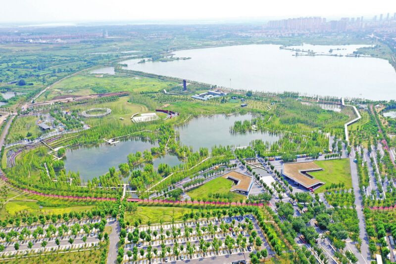 圖為:生態(tài)修復(fù)治理后的采煤沉陷區(qū),建設(shè)春申湖公園,滿足市民休閑需求。