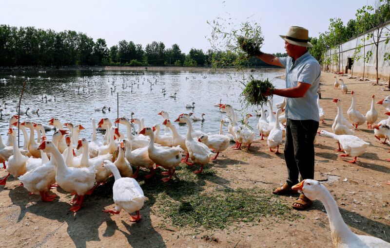 近年來,壽縣依托優(yōu)良地理資源,大力發(fā)展特色養(yǎng)殖業(yè),白鵝產(chǎn)業(yè)規(guī);l(fā)展勢頭強勁。目前,已形成“種鵝繁育、肉鵝養(yǎng)殖、屠宰加工、羽絨制品、餐飲品牌”全產(chǎn)業(yè)鏈發(fā)展格局,全縣白鵝現(xiàn)存欄240萬羽,年產(chǎn)值超5億元。圖為該縣張李鄉(xiāng)福紀(jì)種植養(yǎng)殖家庭農(nóng)場飼養(yǎng)的5000羽白鵝。