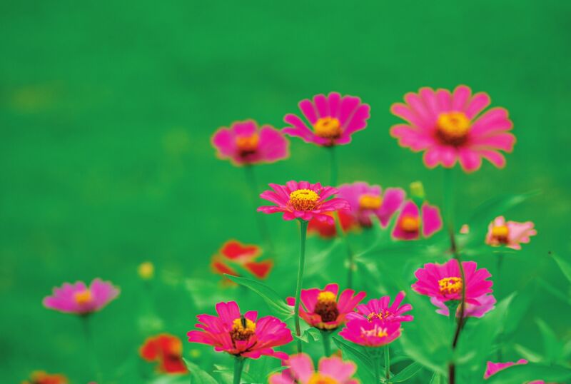 百日菊花語文化——百日菊有許多別名,每個(gè)別名都承載著一種文化意義:因其第一朵花通常在頂端開放,隨后側(cè)枝花朵逐層向上綻放,故而又名“步步高”或“節(jié)節(jié)高”,象征積極向上;因其花序密集,顏色鮮艷,如同被火焰包裹的氈毯,故而又名“火氈花”,象征熱情似火;因其花期綿長,從夏延續(xù)到秋,長達(dá)數(shù)月,故而又名“百日草”,象征青春長駐;因其葉片尖端形似魚尾,取“魚”即“余”的諧音,故而又稱“魚尾菊”,象征生意亨通。百日菊花色艷麗,不同色彩寓含不同意義:白色寓意純潔、美好和善良;黃色寓意日常問候與關(guān)注;紅色寓意持續(xù)的愛;粉色寓意愛情和關(guān)懷;紫色寓意浪漫和愛情;緋紅色寓意愛情的牢固和持久;各色百日菊混搭成花束,則表達(dá)對親朋的緬懷和思念。