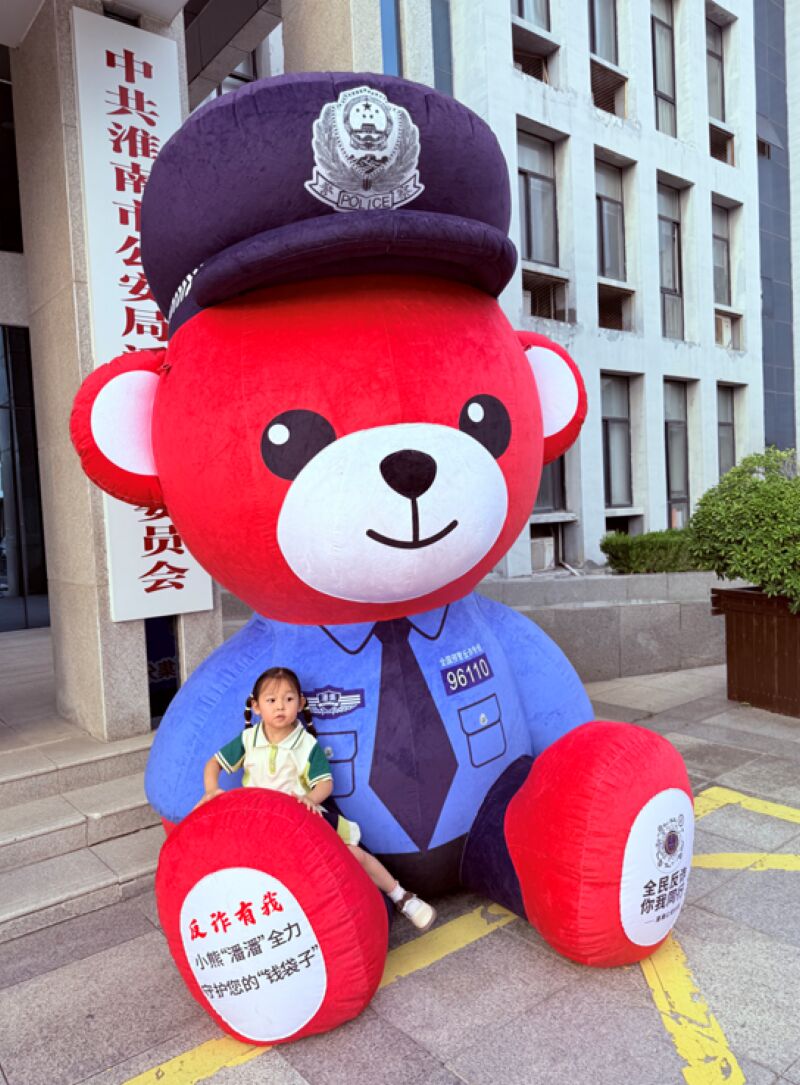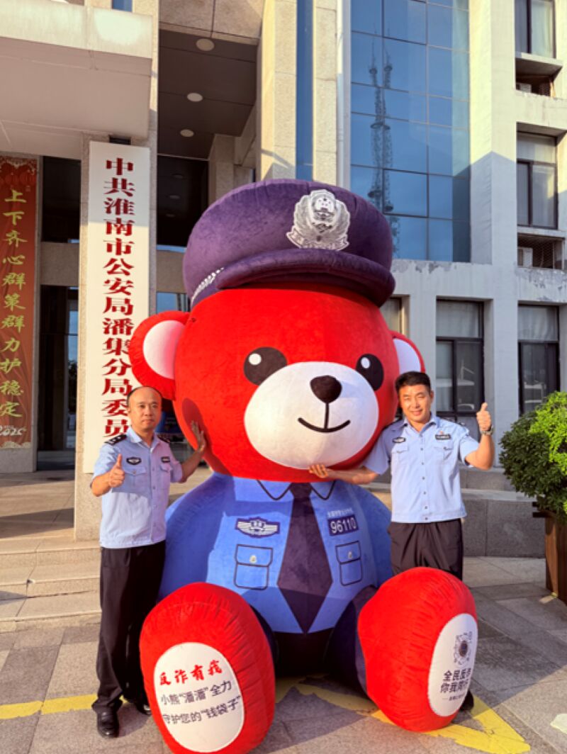 據(jù)潘集公安分局相關(guān)負(fù)責(zé)人介紹,“潘潘”的創(chuàng)意靈感來自一款廣受歡迎的布偶警察小熊。為進(jìn)一步提升反詐宣傳的感染力和傳播力,該局特意定制了這款超大型小熊布偶,借助它萌趣親民的形象,將防詐知識融入市民生活。