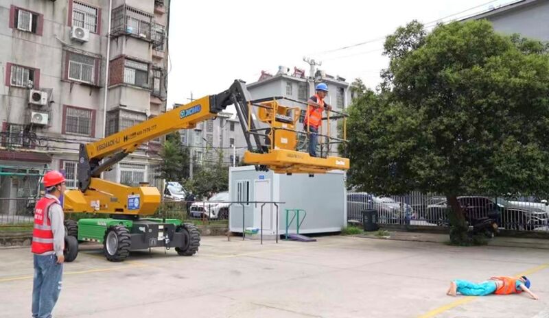 (記者 李嚴(yán) 攝影報(bào)道)隨著城鎮(zhèn)老舊小區(qū)改造工程全面推進(jìn),高處作業(yè)量顯著增加,曲臂車等高空設(shè)備應(yīng)用日益廣泛,安全風(fēng)險(xiǎn)防控成為重中之重。為切實(shí)提升老舊小區(qū)改造項(xiàng)目中高處作業(yè)的安全管理水平與突發(fā)事故應(yīng)急處置能力,近日,田家庵區(qū)在洞泉小區(qū)一處曲臂車作業(yè)點(diǎn),組織開展了一場(chǎng)模擬高處墜落事故的實(shí)戰(zhàn)應(yīng)急演練。