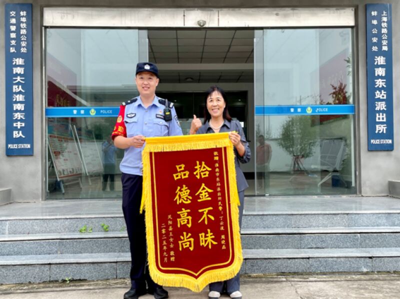 (記者 查嘉琪 攝影報道)日前,一面印著“拾金不昧品德高尚”的錦旗送到了淮南東站派出所。市民王女士專程前來,向幫她找回遺失手提包的民警表達謝意。