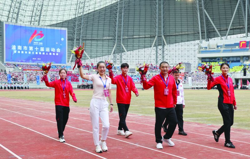 淮南籍優(yōu)秀運動員代表入場。