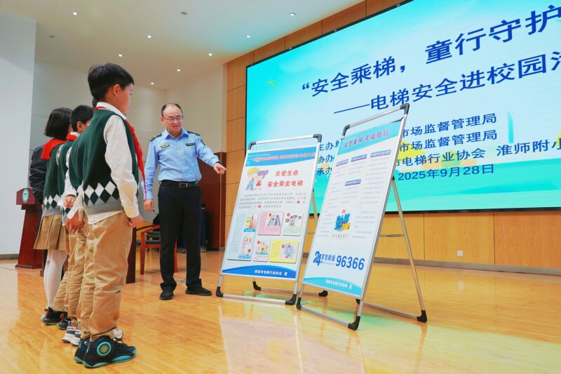 9月28日下午,市市場(chǎng)監(jiān)督管理局、淮南高新區(qū)市場(chǎng)監(jiān)督管理局聯(lián)合市電梯行業(yè)協(xié)會(huì),在淮師附小山南校區(qū)舉行“安全乘梯,童行守護(hù)——電梯安全知識(shí)進(jìn)校園”活動(dòng),向?qū)W生們?cè)敿?xì)講解了垂直電梯和自動(dòng)扶梯的安全規(guī)則、常見(jiàn)危險(xiǎn)行為及故障應(yīng)對(duì)方法。
