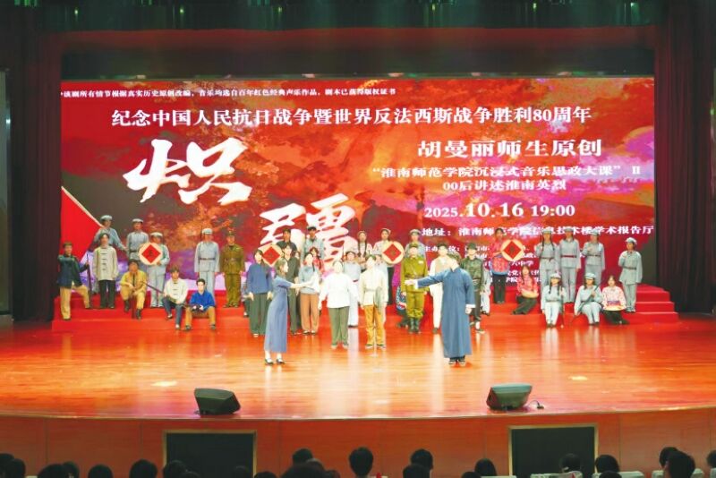 (記者 廖凌云 攝影報(bào)道)為紀(jì)念中國(guó)人民抗日戰(zhàn)爭(zhēng)暨世界反法西斯戰(zhàn)爭(zhēng)勝利80周年,近日,淮南師范學(xué)院學(xué)術(shù)報(bào)告廳上演了“沉浸式音樂(lè)思政大課”——《熾疆》。