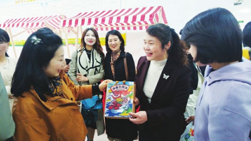 研修交流活動(dòng)中,各位名師校長(zhǎng)感受了學(xué)校教育教學(xué)成果以及良好的校風(fēng)校貌,淮師附小山南十小黨支部書記、校長(zhǎng)梅瑰則向大家介紹了學(xué)生們以淮南牛肉湯和青花瓷為主題制作的各種手工,受到了嘉賓們一致稱贊。