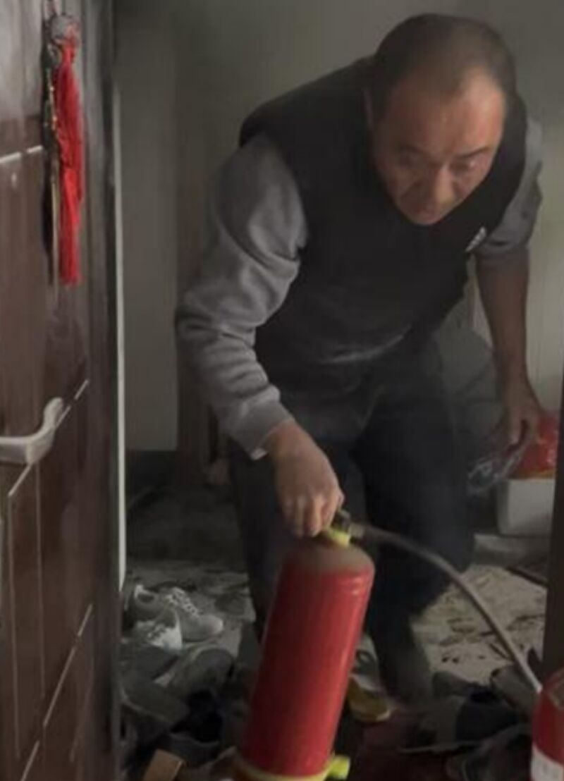一個滅火器很快耗盡,接著第二個也用完了。火勢仍在蔓延,屋內(nèi)不斷傳出爆炸聲,高溫炙烤下,劉鵬遠的衣服沾滿灰燼,濃煙嗆得他劇烈咳嗽。匆匆趕來的妻子看著丈夫狼狽的樣子,心疼地勸阻:“太危險了,等消防隊吧!”