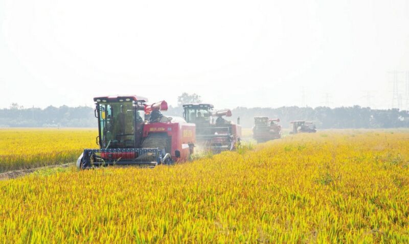 11月2日,金色的陽光灑滿田野,淮南農(nóng)場迎來豐收的喜悅,連片的稻田翻涌著金色的波浪,沉甸甸的稻穗壓彎了枝頭,收割機在田間來回穿梭,將金燦燦的稻谷盡數(shù)歸倉,奏響金秋時節(jié)里最動聽的豐收交響曲。