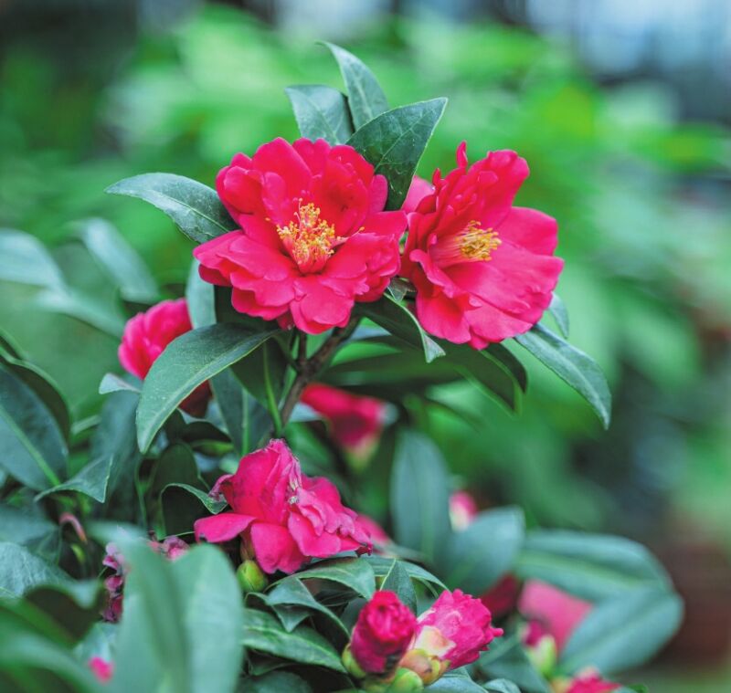 茶花花語與花神——茶花既入列中國傳統(tǒng)“十大名花”,又與杜鵑、龍膽、報春并列中國“四大自然名花”,在《鏡花緣》中更躋身花中“十二友”。茶花號稱“花中嬌客”,總體花語為“卓越、謙遜”,而色彩不同又寓意稍別:粉色象征克服困難、一帆風順;金色代表謙遜、理想、美德與可愛;紅色寓意天生麗質(zhì)、令人驚艷;白色象征純真無邪、清雅可愛。在中國傳統(tǒng)花卉文化中,茶花是農(nóng)歷十月(公歷11月)的花神之一。其代表人物包含西漢王昭君,傳說她在赴匈奴和親前曾采摘一束茶花,途中與之相伴,直至枯萎凋零也不忍舍棄;另一位是唐代白居易,因茶花花期橫跨冬春又稱“耐冬”,與其名句“野火燒不盡,春風吹又生”寓意相得益彰。