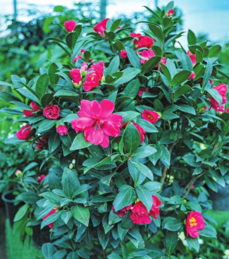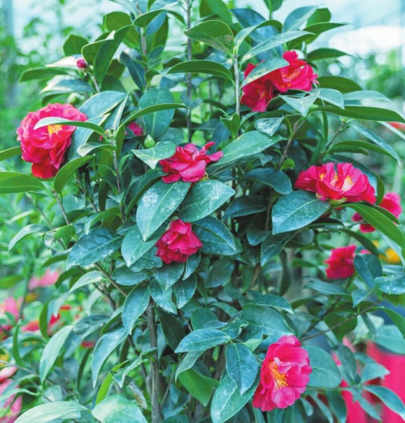盆栽茶花養(yǎng)殖技巧——茶花在立冬之后持續(xù)開花,是冬季家庭盆栽的首選。盆栽茶花養(yǎng)殖技巧:1.土壤:按熟化紅壤土50%、木屑或食用菌渣40%、餅肥粉或牲畜糞10%的比例混合,澆水適量并發(fā)酵熟化后使用;2.光照:冬春季可接受全天日照,夏天需避免陽光直射,要將植株移到見光背陽、通風良好的環(huán)境中養(yǎng)護;3.溫度:茶花生長適宜溫度為18-25℃,冬季雖然耐寒,但在氣溫驟降前需將花盆移到背風向陽處安全越冬;4.濕度:茶花喜濕,春秋季每日澆水一次,夏季早晚各澆水一次,每月可澆一次0.5-1%的硫酸亞鐵水,以防土壤堿化;5.營養(yǎng);根據(jù)薄肥勤施的原則,每月以腐熟枯餅水、花卉專用肥進行1-2次根外施肥,生長旺季以1-2%的植物生長素噴施葉片。