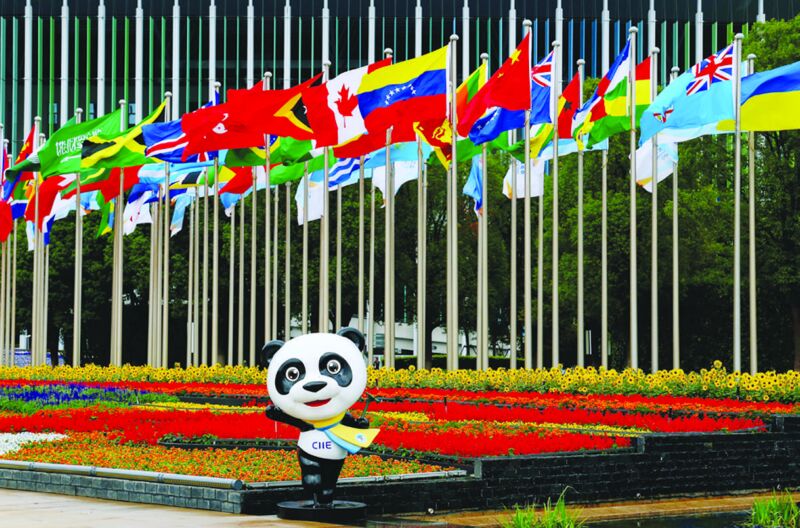 以大熊貓為原型的進(jìn)博會(huì)吉祥物進(jìn)寶。