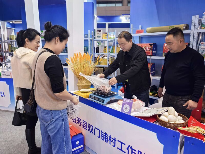 “我們板橋雙門(mén)鋪的黑豬是壽霍黑豬,采用生態(tài)養(yǎng)殖,您看這肉的紋理……這個(gè)咸鵝采用的是皖西大白鵝,大一點(diǎn)的都有十幾斤重……”11月7日至9日,在合肥濱湖國(guó)際會(huì)展中心舉辦的2025皖美綠色食品暨循環(huán)農(nóng)業(yè)博覽會(huì)上,壽縣板橋鎮(zhèn)雙門(mén)鋪村駐村工作隊(duì)的展位前格外熱鬧。此次參展是板橋鎮(zhèn)深入貫徹黨的二十屆四中全會(huì)“加快農(nóng)業(yè)農(nóng)村現(xiàn)代化,扎實(shí)推進(jìn)鄉(xiāng)村全面振興”精神的生動(dòng)實(shí)踐,工作隊(duì)員們既熱情接待現(xiàn)場(chǎng)客商,更架起手機(jī)開(kāi)展線上直播,將板橋草席、壽霍黑豬肉、當(dāng)?shù)貎?yōu)質(zhì)大米、咸鵝及其副產(chǎn)品等同步推介給廣大網(wǎng)友,成為展會(huì)上一道亮麗的風(fēng)景。