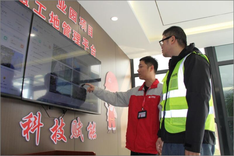 在項(xiàng)目部智慧工地管理平臺,記者看到,大屏上清晰顯示“今日考勤數(shù)345人”,18個(gè)在線攝像頭實(shí)時(shí)查看各重點(diǎn)作業(yè)面施工情況。施工方現(xiàn)場負(fù)責(zé)人告訴記者:“施工人數(shù)最多時(shí)達(dá)到460人,現(xiàn)場配備6臺塔吊、4臺物料提升機(jī),并與專業(yè)機(jī)械租賃單位簽訂24小時(shí)運(yùn)轉(zhuǎn)協(xié)議,保障垂直運(yùn)輸需求!