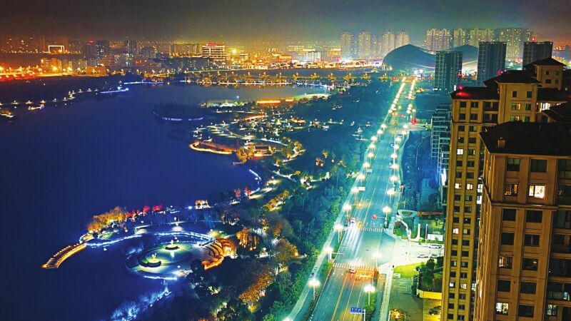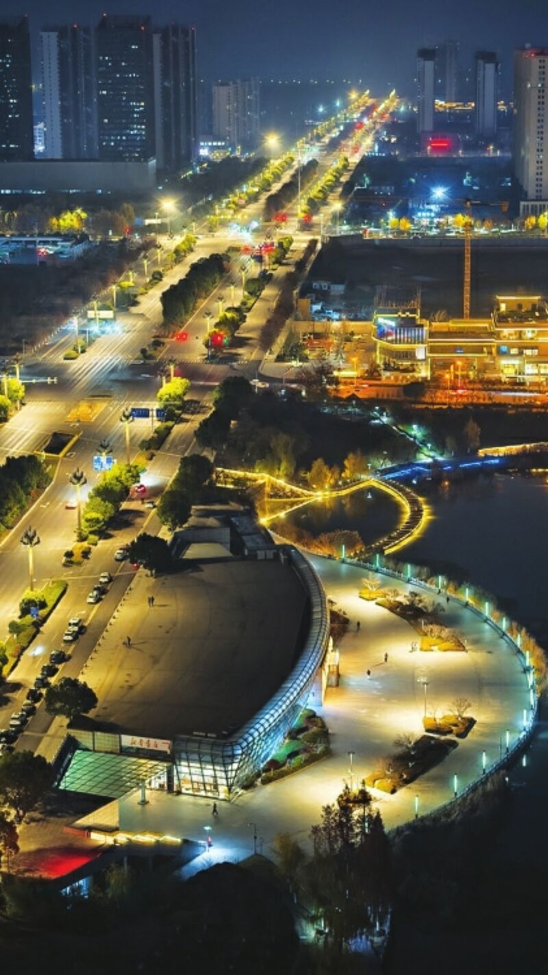 夜幕降臨,車(chē)流蜿蜒,璀璨的燈光在樓宇間流轉(zhuǎn)、在街道上延伸,交織成熠熠生輝、星光點(diǎn)點(diǎn)的銀河帶,將夜空與大地溫柔相連,一輪紅月相映,盡顯都市夜景的繁華與浪漫。