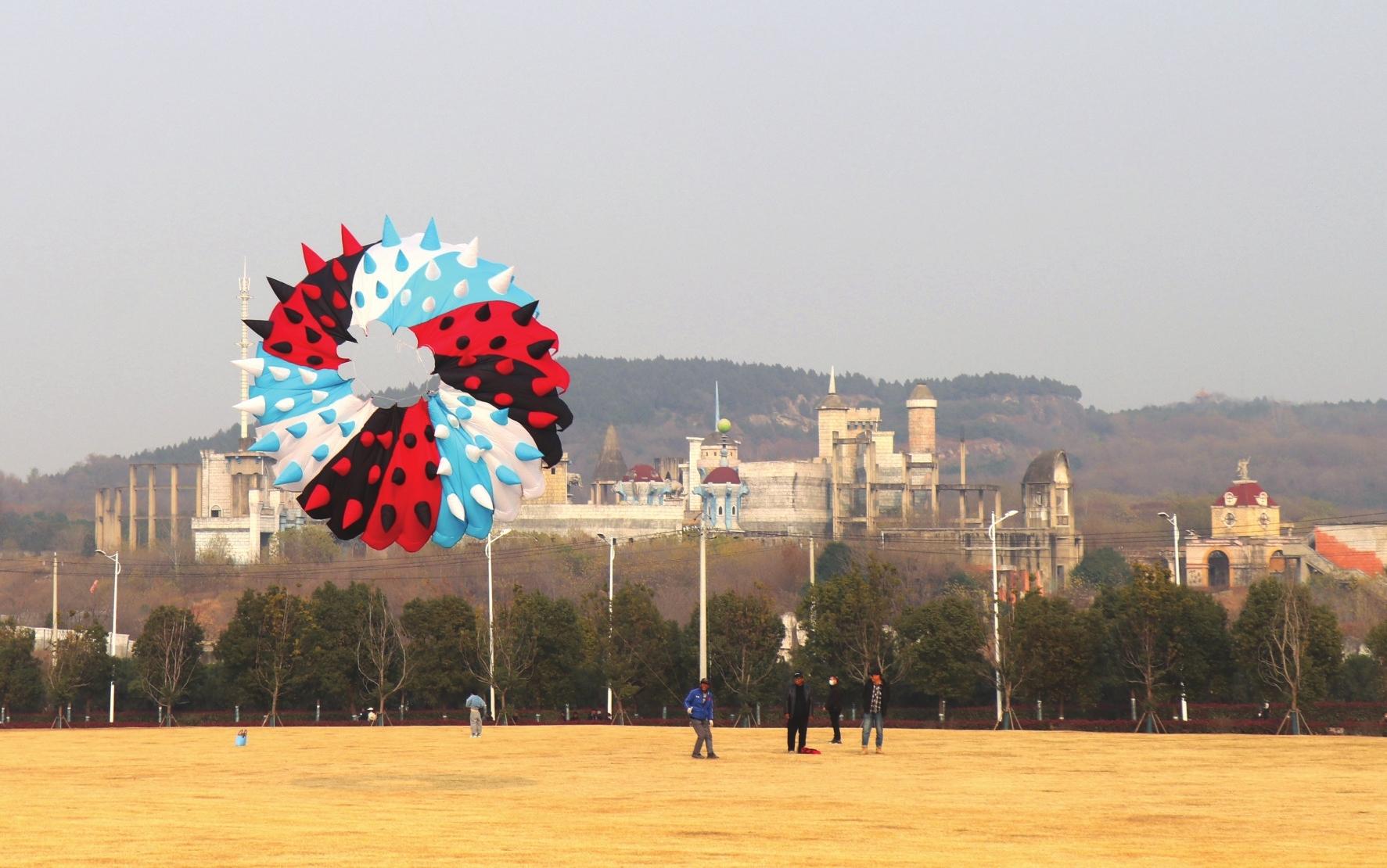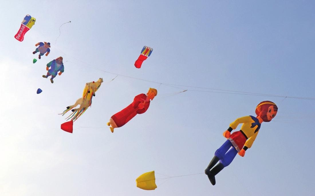 日前,途經(jīng)淮南科技館西側(cè)廣場,忽見天空浮現(xiàn)斑斕夢境——一個個娃娃、各式景物造型的風箏在空中翩躚起舞,它們中有《哪吒鬧海》里的經(jīng)典神話形象,有《西游記》里的八戒、悟空等等,這些故事里的神話人物造型風箏栩栩如生,在澄澈藍天的映襯下絢麗奪目。經(jīng)了解,這一空中奇景出自一群退休的老年風箏愛好者之手。冬日的暖陽下,他們以絲線牽動童趣,在廣場上空織出夢幻的天幕,悄然綻放出一個舞動的童話世界”……通訊員王傳旭