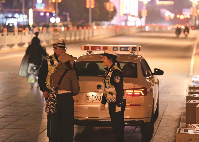 1月10日,第六個(gè)中國(guó)人民警察節(jié)。當(dāng)天,在壽縣古城南門,23歲女交警金安琪迎著寒風(fēng)疏導(dǎo)車流,身影與千年古城墻相映成景。
