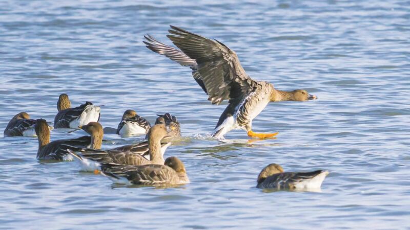 1月13日,大通蔡城塘水面之上,一群大雁翩躚起舞,它們沐浴在陽光下,時(shí)而低頭覓食,時(shí)而展翅飛翔,時(shí)而嬉戲打鬧,羽翼掠過粼粼波光,姿態(tài)靈動(dòng)灑脫,為冬日的寧靜水面增添了無限生機(jī),盡顯自然生態(tài)之美。