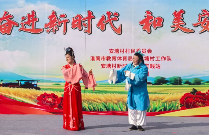 當(dāng)日,演出在激昂的民樂合奏《地道戰(zhàn)》主題曲中拉開序幕。隨后,悠揚(yáng)婉轉(zhuǎn)的黃梅戲選段《難得相逢在人間》、電吹管齊奏《茉莉花》《小城故事》等節(jié)目接連上演,贏得陣陣掌聲。由市教體局駐安塘村第一書記、工作隊(duì)隊(duì)長(zhǎng)周世春創(chuàng)作、本村村民表演的三句半《安塘村禮贊》,以樸實(shí)詼諧的語言細(xì)數(shù)家鄉(xiāng)變化:“鑼鼓一敲震天響,安塘鄉(xiāng)親聚一堂……孔店鄉(xiāng)里氣象新,智慧農(nóng)業(yè)閃光芒,大棚果蔬銷全國(guó),錢滿倉(cāng)!”節(jié)目生動(dòng)反映出產(chǎn)業(yè)興旺、生活富裕的新面貌,引發(fā)全場(chǎng)共鳴。特邀推劇演員代華帶來的《送茶路上》,也讓村民近距離感受到非遺文化的魅力。