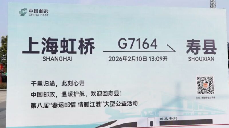 (記者 杜婧婧 張鵬 攝影報道)2月10日下午,一列承載著濃濃鄉(xiāng)情與暖心關懷的G7164次高鐵列車,緩緩駛入壽縣站。400余名在滬務工的淮南籍老鄉(xiāng),手持由中國郵政免費贈送的返鄉(xiāng)車票,踏上了家鄉(xiāng)熱土。至此,第八屆“春運郵情 情暖江淮”關愛務工創(chuàng)業(yè)人員公益活動全省主場行動——上海虹橋至壽縣公益專列,圓滿完成了它的溫情使命。