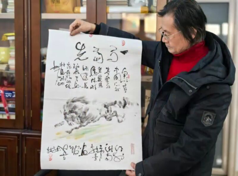 (記者 羅靜 攝影報道)指尖蘸墨,落紙生風(fēng)。農(nóng)歷丙午馬年將至,淮南指紋畫非遺傳承人楊建立心中,早已奔騰著一匹意氣風(fēng)發(fā)的駿馬。他以手指為筆,指尖蘸取特制印泥,在宣紙上輕點按壓、起伏勾勒,一幅生氣勃發(fā)的《一馬當(dāng)先》徐徐躍然紙上。馬年畫馬,既是應(yīng)景之作,更是他以獨特藝術(shù)語言,書寫的新春時光寄語。