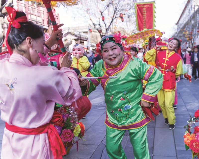 春節(jié)期間,壽縣古城處處洋溢著濃厚的節(jié)日氛圍。民間藝人們紛紛走上街頭,表演著舞龍、抬閣肘閣、花車踩街等豐富多彩的非遺活動,吸引了眾多市民和游客駐足觀看。大家在濃濃的喜慶氛圍中共同歡慶新春佳節(jié),感受著傳統(tǒng)文化的魅力。