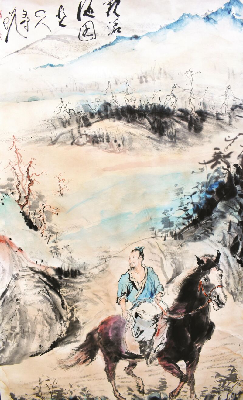 馬在中華文化中象征著剛健雄壯與自強不息,寓意行穩(wěn)致遠、興旺發(fā)達。把宗鑫此次繪制了《觀滄!贰短慊ù簳浴贰兑获R當先》等作品,以駿馬奔騰之姿,喻示藝術進取之心,寄寓對生活的熱忱。其中,《蹄花春曉》尤為突出。在這幅作品中,他自創(chuàng)跨界畫法,融匯素描、油畫、水彩、水墨及色粉等多種藝術形式,既汲取宋元氣韻,又呈現(xiàn)出當代藝術肌理。畫面意境深遠,可觀可游,體現(xiàn)了其深厚的藝術造詣與創(chuàng)新精神。