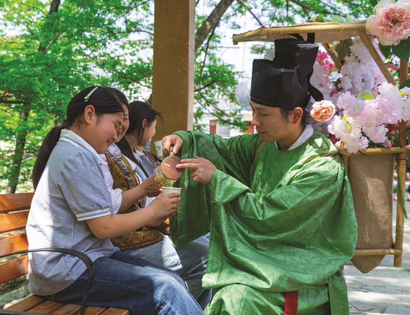 清明時(shí)節(jié),春和景明,八公山特邀“茗茶仙官”登場,上山采茶,下山泡茶,并向閃沖村里的游客贈(zèng)茶,與大家一起分享特色春茶滋味以及八公山的美麗風(fēng)光。