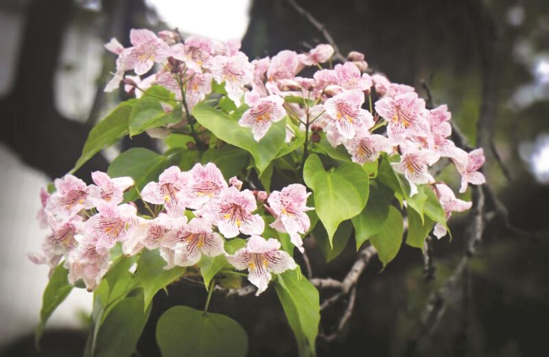 在洛河電廠小區(qū),每逢春深時(shí)節(jié),高大的梓樹便繁花怒放。淡紫的花穗綴滿枝頭,如云似霧;鳥雀在繁花間穿梭啼鳴,婉轉(zhuǎn)悅耳。清風(fēng)徐來,落英繽紛,鋪就一地錦繡——春光在此悄然駐足,美得令人心醉。
