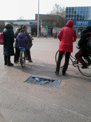 據(jù)李先生介紹,由于許多拉煤的大貨車都喜歡停靠緯六路并從此行經(jīng)至蔡新路,所以這個(gè)丁字路口負(fù)載的重型車輛較多,而長(zhǎng)此以往,窨井蓋當(dāng)然不堪重負(fù)。之前的那塊窨井蓋就被軋得不翼而飛,路面上露了個(gè)大窟窿,給過往車輛和行人帶來安全隱患!斑好,昨天電信公司的搶修人員來到此處,更換了一個(gè)新的窨井蓋,解除了這里的安全隱患,可沒想到,還不到24小時(shí),又被大貨車給軋壞了,看著真是讓人又氣又心疼!”說到此李先生也頗感無奈與無助,他希望通過本報(bào)能呼吁有關(guān)部門管管這里的車輛停靠情況,也希望電信部門能盡快修復(fù)此處,確保居民過一個(gè)平平安安的春節(jié)。