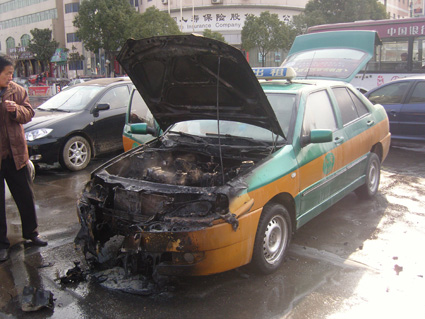 1月21日上午10時30分左右,市民趙先生給早報打來電話,反映在國稅局十字路口一輛出租車發(fā)生自燃,火勢兇猛。