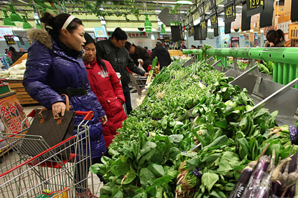 隨著春節(jié)的臨近,我市“菜籃子”貨足價穩(wěn)。據悉,我市有關部門重視蔬菜、肉類供應渠道管理,外地貨源供應充足,加上本地蔬菜種植面積擴大,保證了春節(jié)市場的供應。圖為市民在市內超市選購貨足價穩(wěn)的新鮮蔬菜。