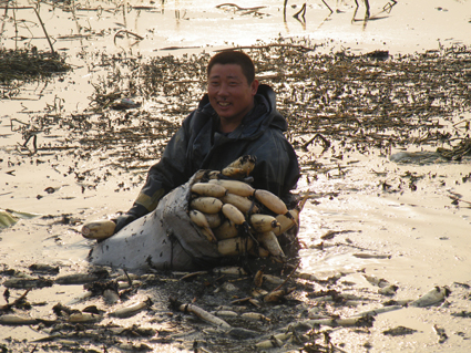 正在洗藕的姚寶村村民姚紅軍告訴記者,2009年較為風調(diào)雨順,即使偶有大雨,灣邊設(shè)置的排澇站也能及時把洪水排出去,所以今年蓮藕收成不錯。記者在收獲現(xiàn)場看到,很多村民挖藕都使用上了“挖藕機”,既提高了挖藕效率又大大節(jié)省了人力。姚紅軍說:使用“挖藕機”,一天兩個人能挖出五六百斤蓮藕,輕輕松松幾百元入賬。記者按照村民們提供的批發(fā)價格計算,姚紅軍家承包的20多畝蓮藕,今年少說也能賣出3萬元。
