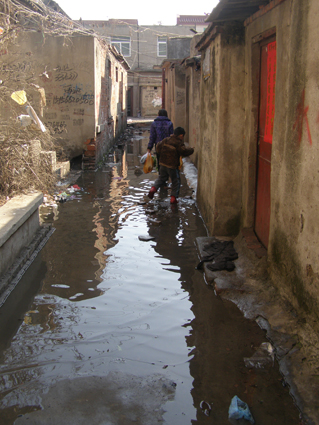 圖二:積水的小巷。