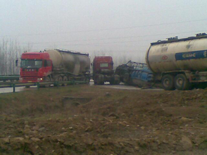 3月24日凌晨3時許,一輛水泥罐裝車路過合徐高速公路淮南連接線時,由于拐彎不慎,翻倒在地,所幸無人員傷亡。